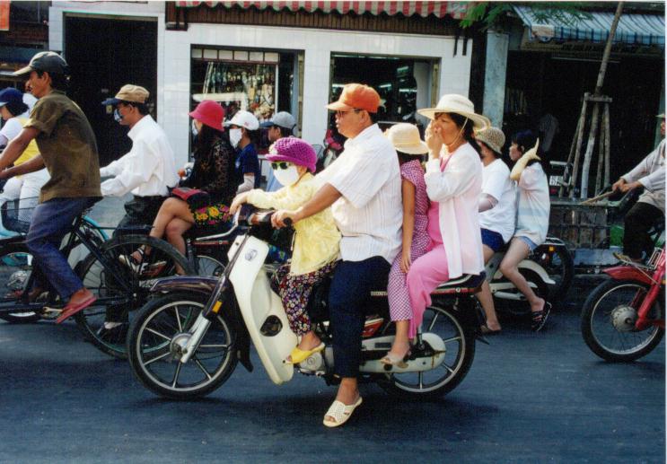 ホーチミンシティを車で視察していると、バイクの乗り方にも活気が見られた。家族に一台のバイクが普及しつつあるのだろう、一家で乗っているのにはいささか目を見張った。危なくないのだろうかと思うのだが、自転車程度のノロノロ速度だから落ちても怪我はしないと思う。